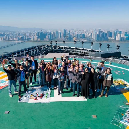 A spectacular 20th AAmA event at the Greenland Hangzhou Century Center! This is the tallest building in Hangzhou and 170 tallest in the world, with a height of 310 m and 67 floors. Aside from the one of a kind live painting at the helipad and the elegant indoor international exhibition, we were also highly honored to receive certificates and the official 19th Asian Games Mascot from pure gold.